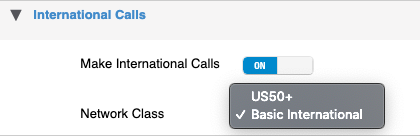 For PBX users that are permitted to place international calls, an additional restriction option has been added for each user. When choosing to enable International calling for a user, there are now two choices. The US50+ restriction consists of the 50 US states, Canada, Puerto Rico and Guam. All other destinations are restricted. The Basic International option is the same as the current international calling restrictions which opens up additional countries, but still has a number of restrictions.