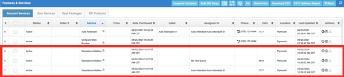 When a Standalone Mailbox is assigned to an Auto Attendant, Hunt Group or Call Queue in the Customer Administration Portal, the assignment details will now show Atlas. If a service remains unassigned, the extension information will remain blank. This makes it easier to identify an unused service for cancellation.