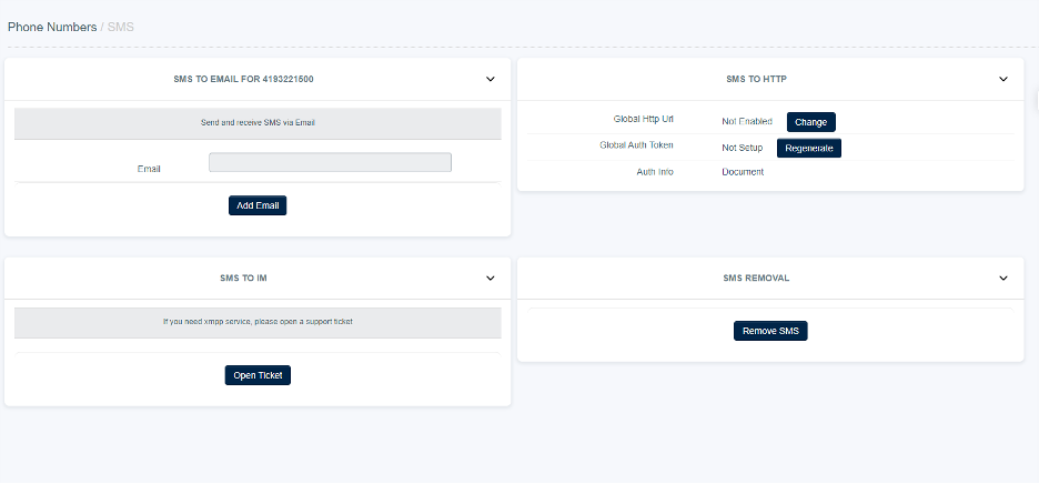 Once activated, users will be able to manage their SMS service for numbers on this page the same as before. The change is they will be directed to open a ticket with support to enable XMPP service on our new platform for numbers.