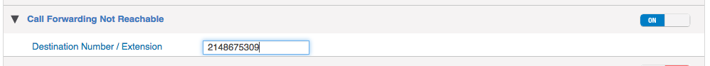 - Enter the number or extension you want to forward the calls to in the event of a not-reachable or offline condition (when none of the Assigned Users are capable of receiving a call due to being off-network)