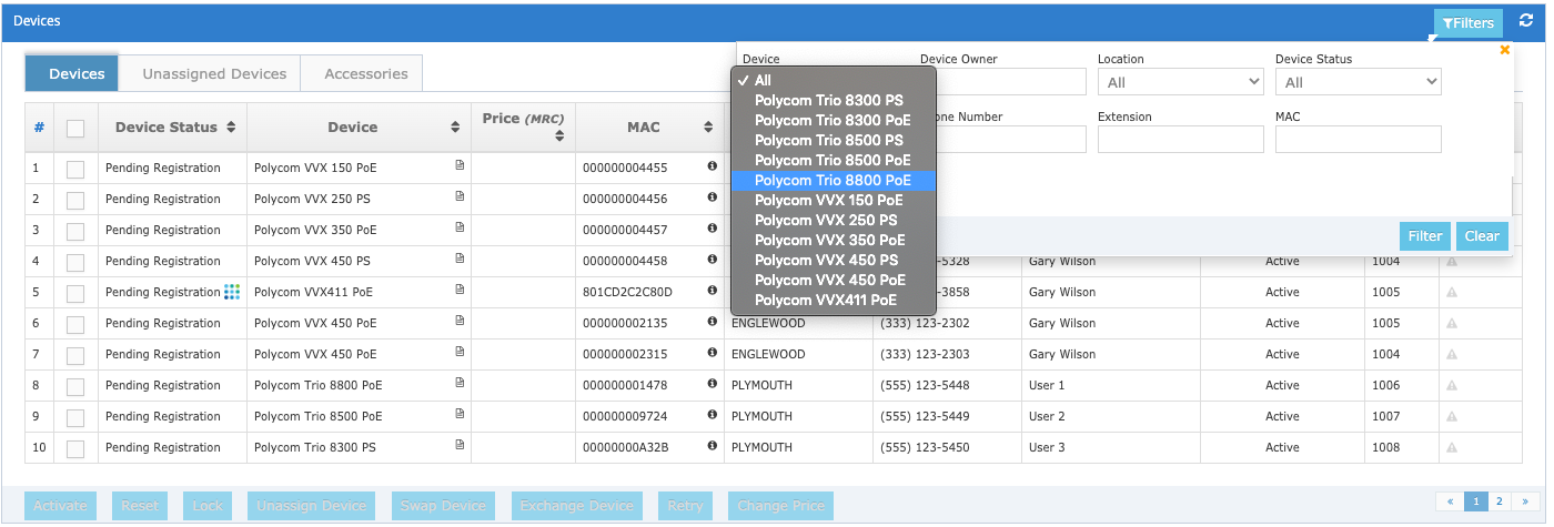 This release adds support for ordering, provisioning, and managing the Poly Trio 8300, 8500, and 8800 conference phones. These will be added to all Partner Setups in the Devices section in Atlas and can be enabled when ready to allow ordering. This also includes the power supplies and the expansion MIC set that works with all three conference phones. The Trio 8300 supports a 12' pickup range and includes WiFi, Bluetooth, and USB support. The Trio 8500 is a full touch-screen phone with a 14' pickup range, Bluetooth, and USB support. The Trio 8800 is a full touch-screen phone with a 20' pickup range, Wifi, Bluetooth, and USB support. The Trio 8500 and 8800 phones can also support integration with Zoom using an external Poly Visual + device, as well as supporting daisy-chaining of up to three Trio 8500 and/or Trio 8800 phones to cover a much larger conference room space. See the Customer Administration section for details on management.