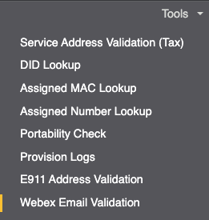 A new Webex Email Validation tool has been added to the Tools menu that will let you pre-validate in bulk a list of user’s email addresses. It’s highly recommended to use this tool to determine if users can be successfully created in Webex. In many cases, customers might already be in their own organization, and this might cause conflicts when trying to onboard them to another Webex org.