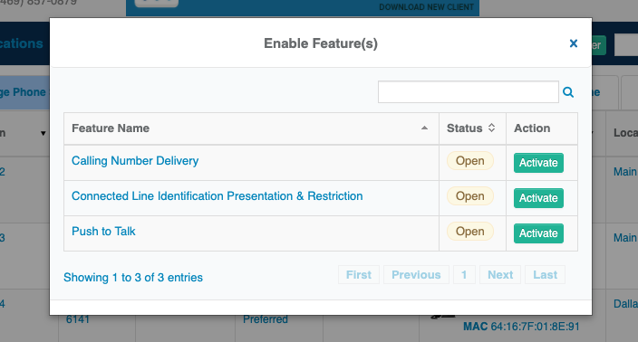 Note: you will receive a message that the feature is being activated, and that it is In progress while the system is building the feature set in the back end. This can take several minutes depending on the PBX.