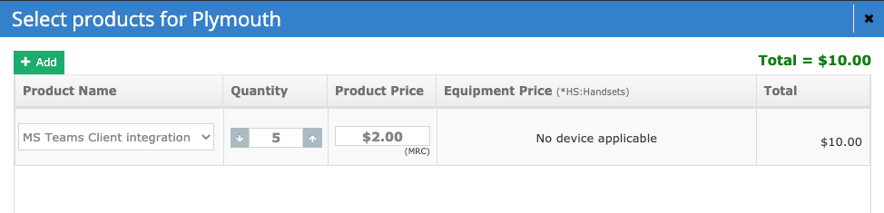 The MS Teams Client Integration license can be added to any new or add-on sales order and process through like other sales orders.