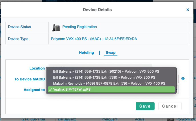 You can swap out an activated device with an unassigned one in the Manage Phone System tab in Locations.